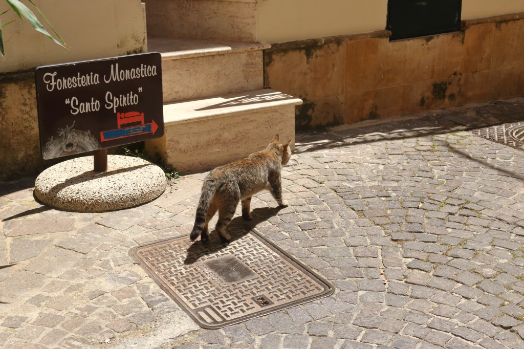 What caught my eye was how perfectly she lined up with the sign pointing to “Foresteria Monastica – Santo Spirito.” It looked like she was following it on purpose, like she had her own room waiting. There was something so calm and intentional about the way she walked that I couldn’t help but raise the camera and take the shot.